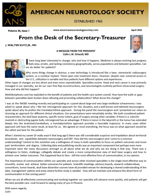 NAMED LECTURESHIPS of the AMERICAN NEUROTOLOGY SOCIETYThe following lectures are presented each year at one of the two Scientific Meetings. William E. Hitselberger Memorial Lecture